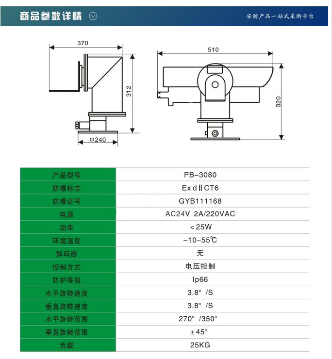 普天视PTS-3080 防爆不锈钢云台摄像机