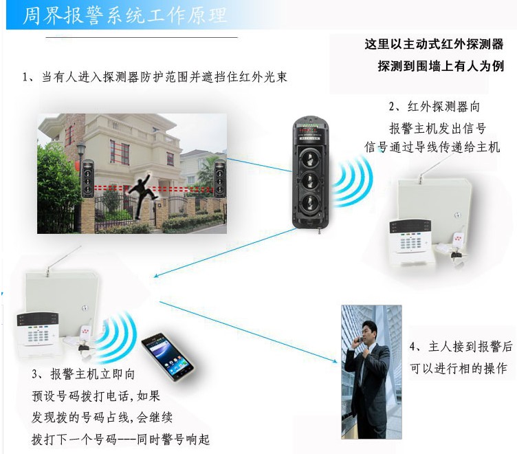 三光束红外对射 室外报警器 艾礼富对射围墙防盗报警器...