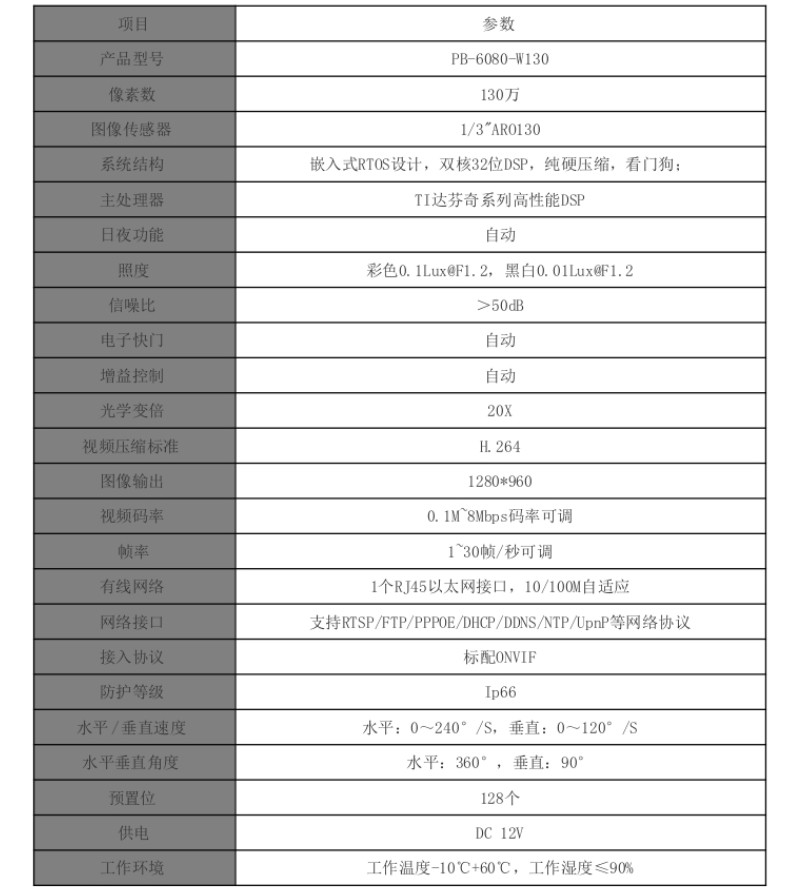 普天视PB-6080-W130 防爆高速球摄像机