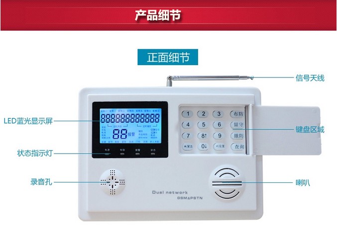 GSM卡固话双网 防盗报警智能主机